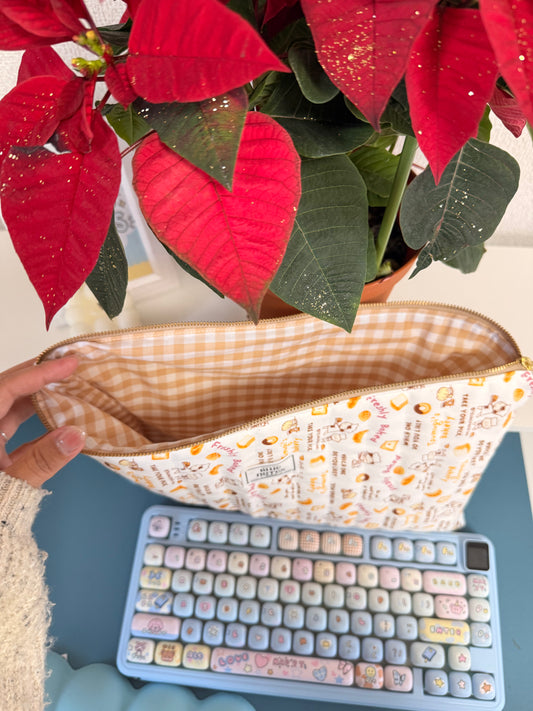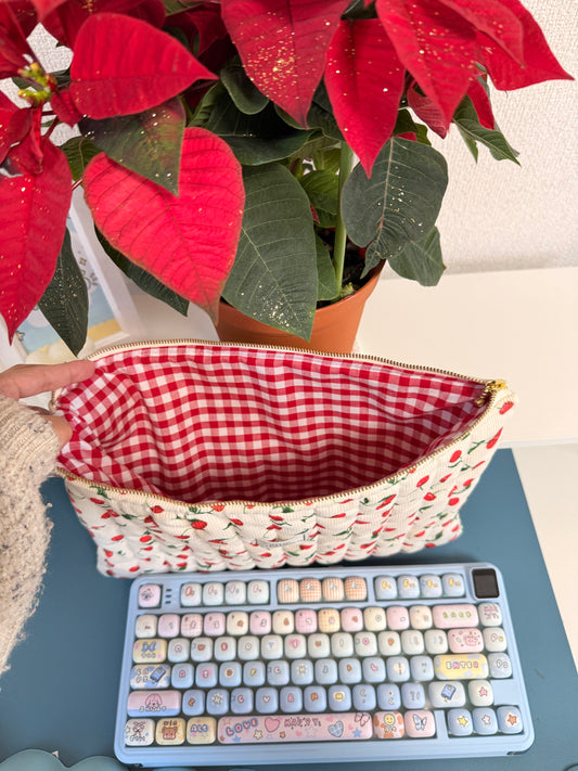 Handmade with soft fabric and a dreamy patterns, perfect for storing makeup, skincare, stationery, or everyday must-haves.