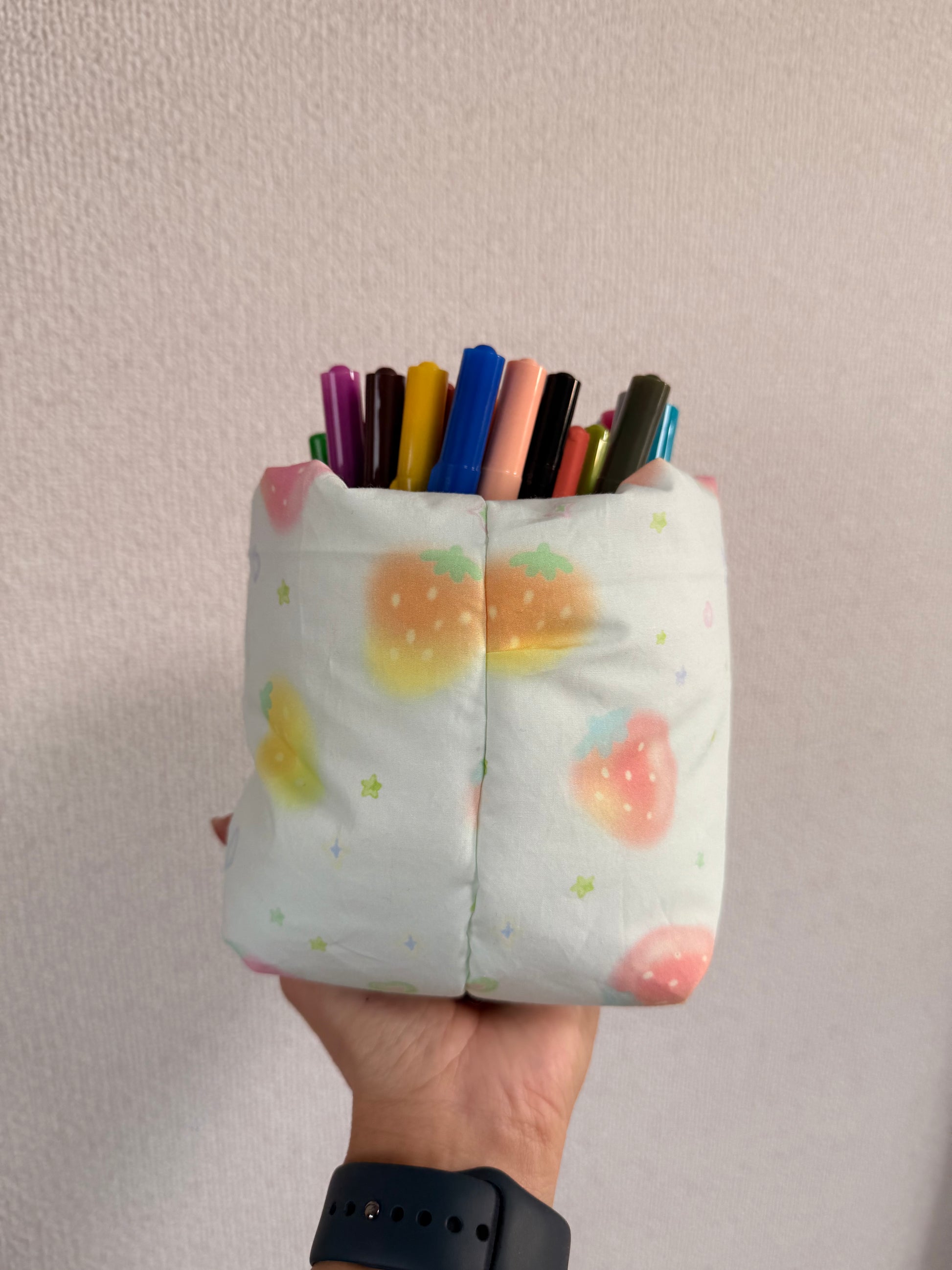 Lovingly handmade from cotton, this kawaii vanity bucket is perfect for storing your daily must-haves. Whether you use it for makeup, skincare, hair accessories, or stationery, it keeps your space tidy while adding a soft, cozy aesthetic.