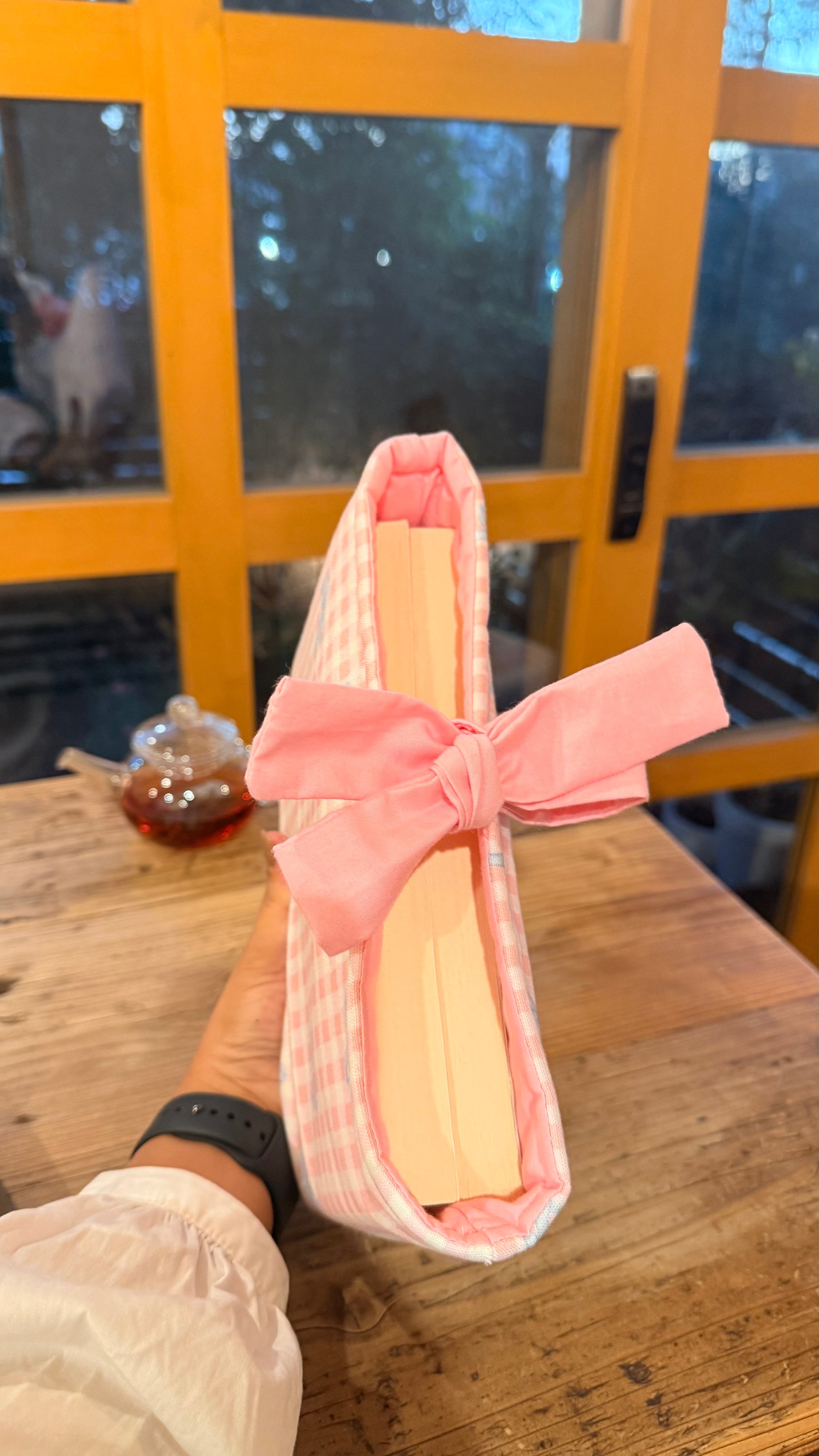 Each book sleeve is lovingly handmade to keep your favorite reads safe and cozy ♡ Made with soft cotton fabric and gentle padding, it protects your book from bent pages and little scratches while adding a touch of cuteness to your day.